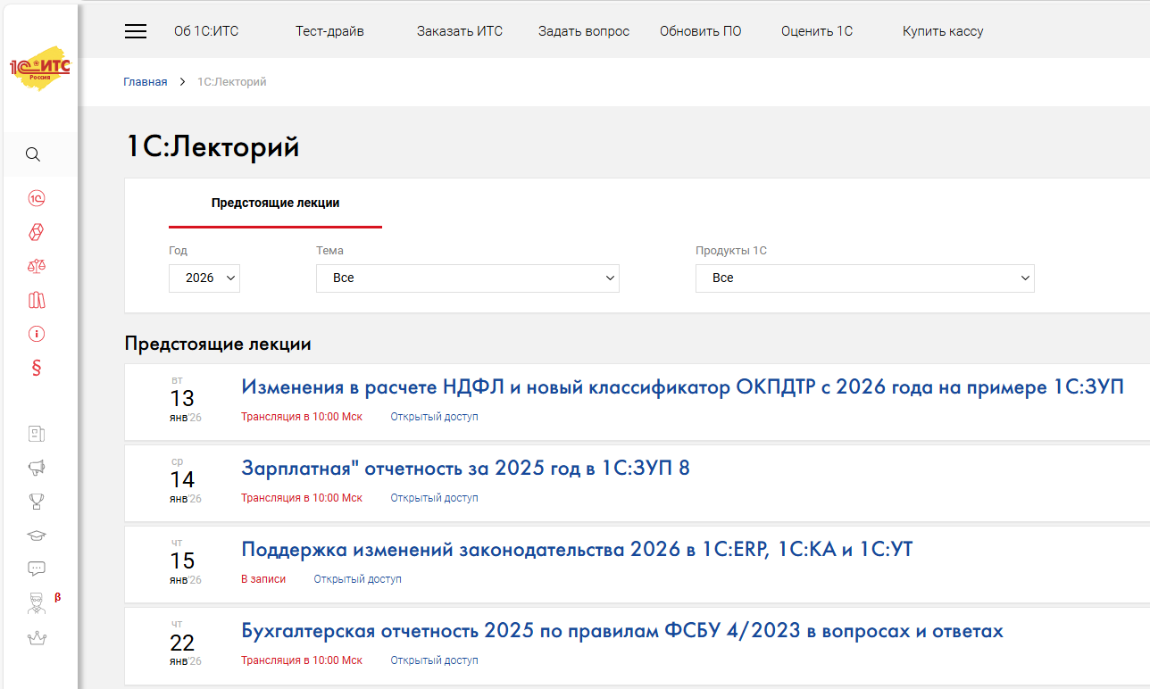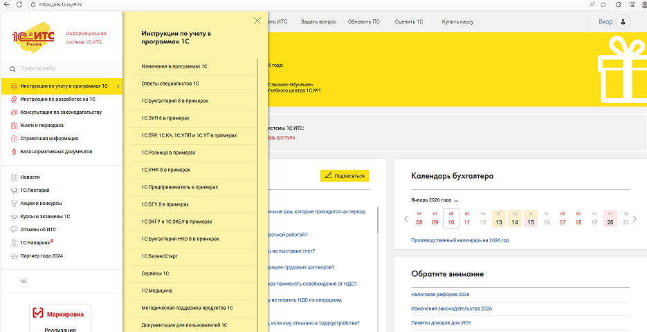 1С:ИТС объединяет материалы и экспертные рекомендации, полезные для бухгалтеров, кадровых специалистов, руководителей и IT-разработчиков. На портале собраны инструкции, справочники, обзоры изменений, калькуляторы и готовые ответы экспертов, охватывающие вопросы налогообложения, ведения учета, кадрового администрирования и работы с приложениями 1С.